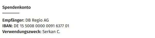 In Abstimmung mit der Familie und der Deutschen Bahn wurde eine großangelegte Spendenaktion ins Leben gerufen. Das Ziel ist es, den beiden Jungen eine Ausbildung und eine gesicherte Zukunft zu ermöglichen – eine Last, die Serkan C. als alleiniger Versorger der Familie stets mit Stolz getragen hatte.